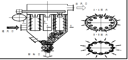 除塵器的清灰采用壓縮空氣低壓脈沖清灰。