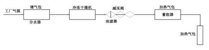 因此針對(duì)這兩個(gè)問題對(duì)氣源進(jìn)行處理,氣源處理工藝流程(見圖)